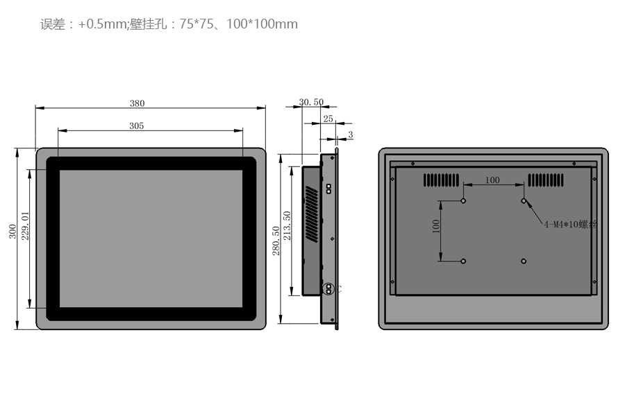 工作溫度 | -20℃-70℃ | 可視尺寸 | 305mm*229mm |
