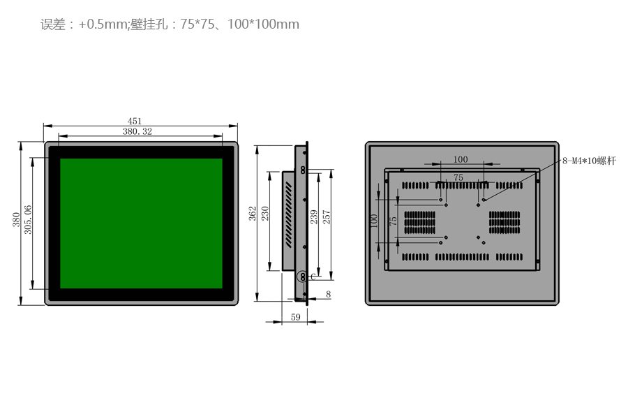 工作溫度 | -20℃-70℃ | 可視尺寸 | 380mm*305mm |