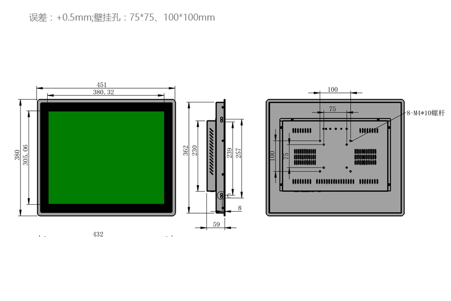 工作溫度 | -20℃-70℃ | 可視尺寸 | 380mm*305mm |
