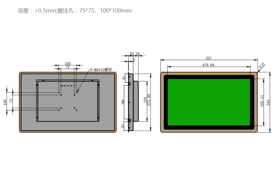 工作溫度 | -20℃-70℃ | 可視尺寸 | 476mm*268mm |